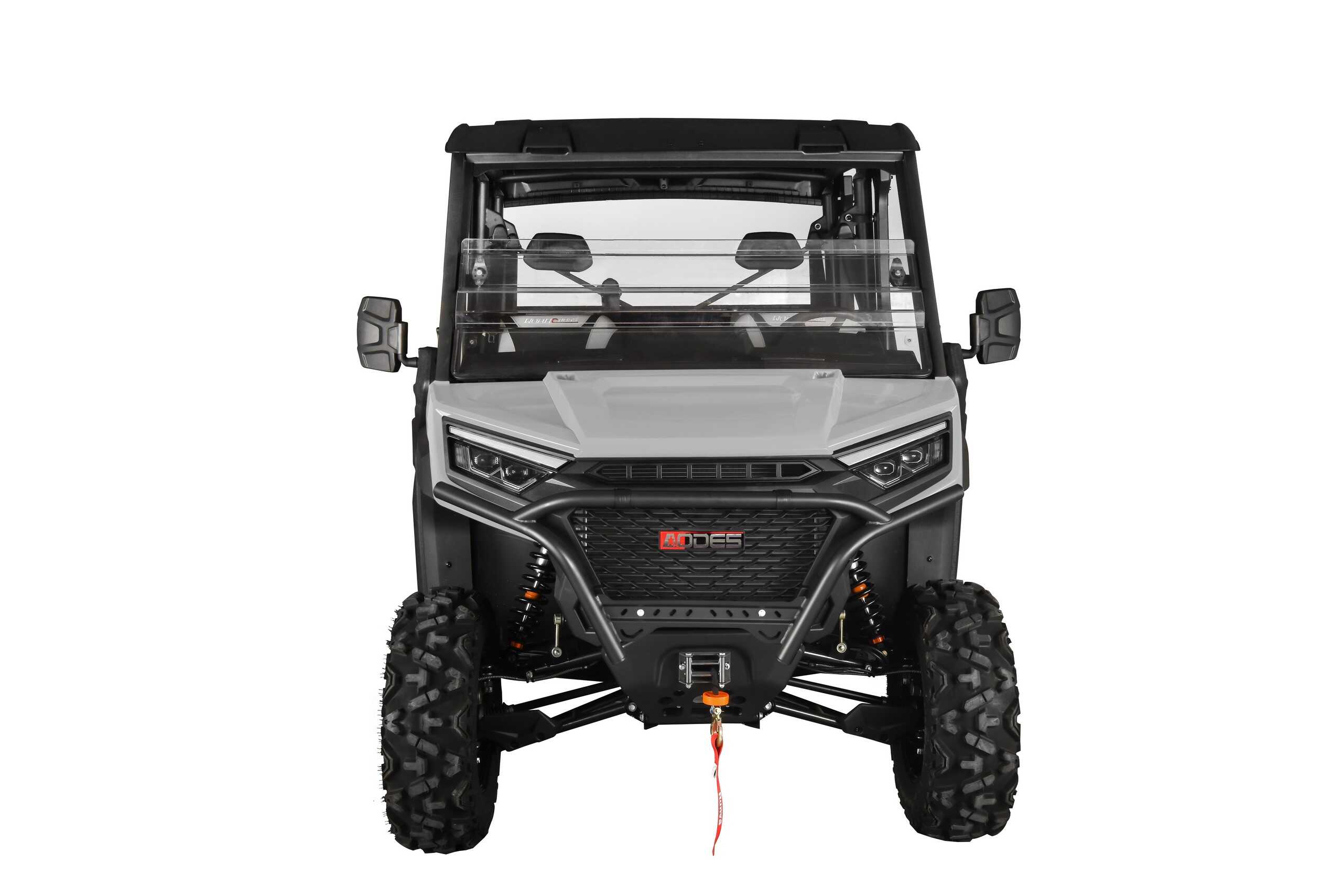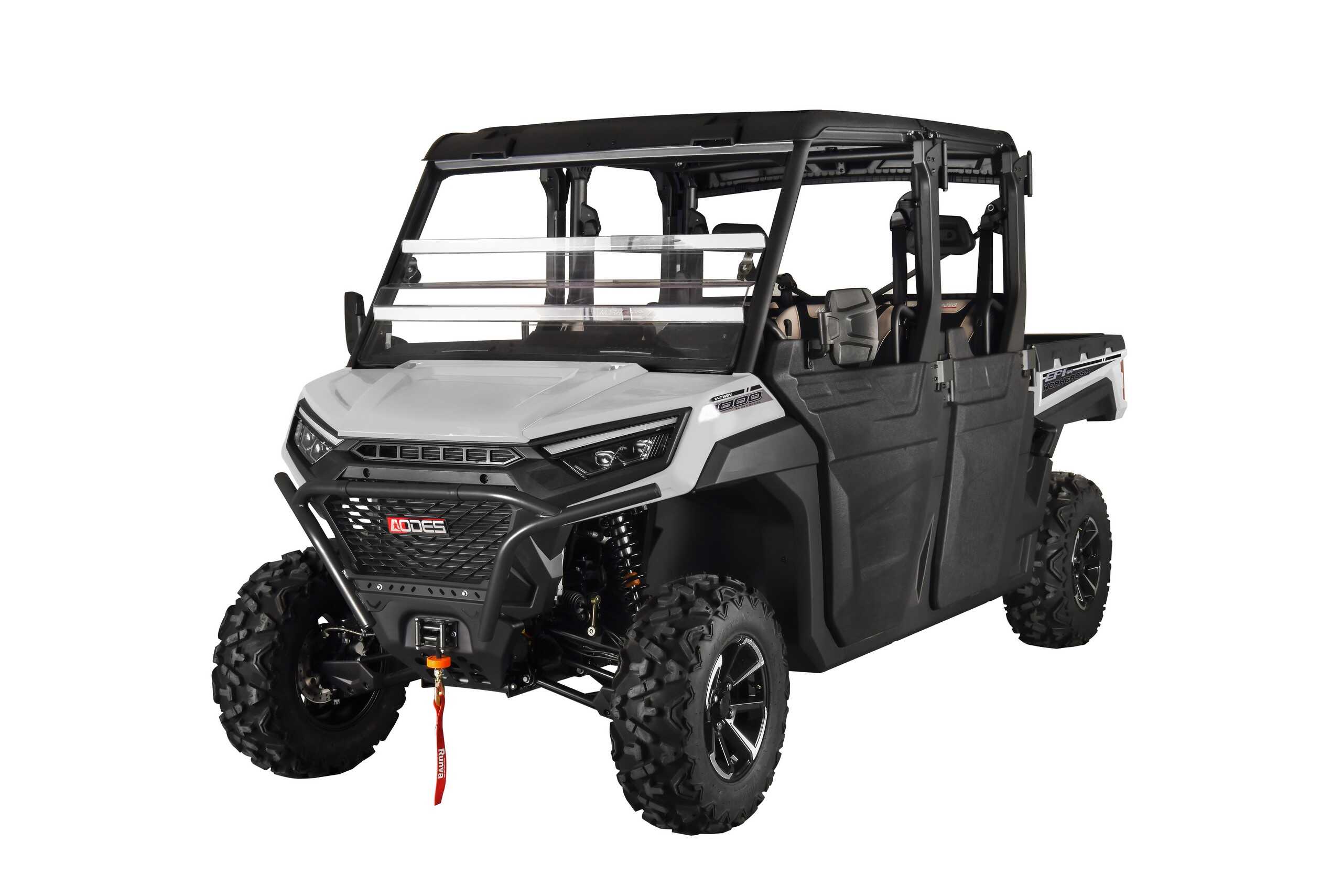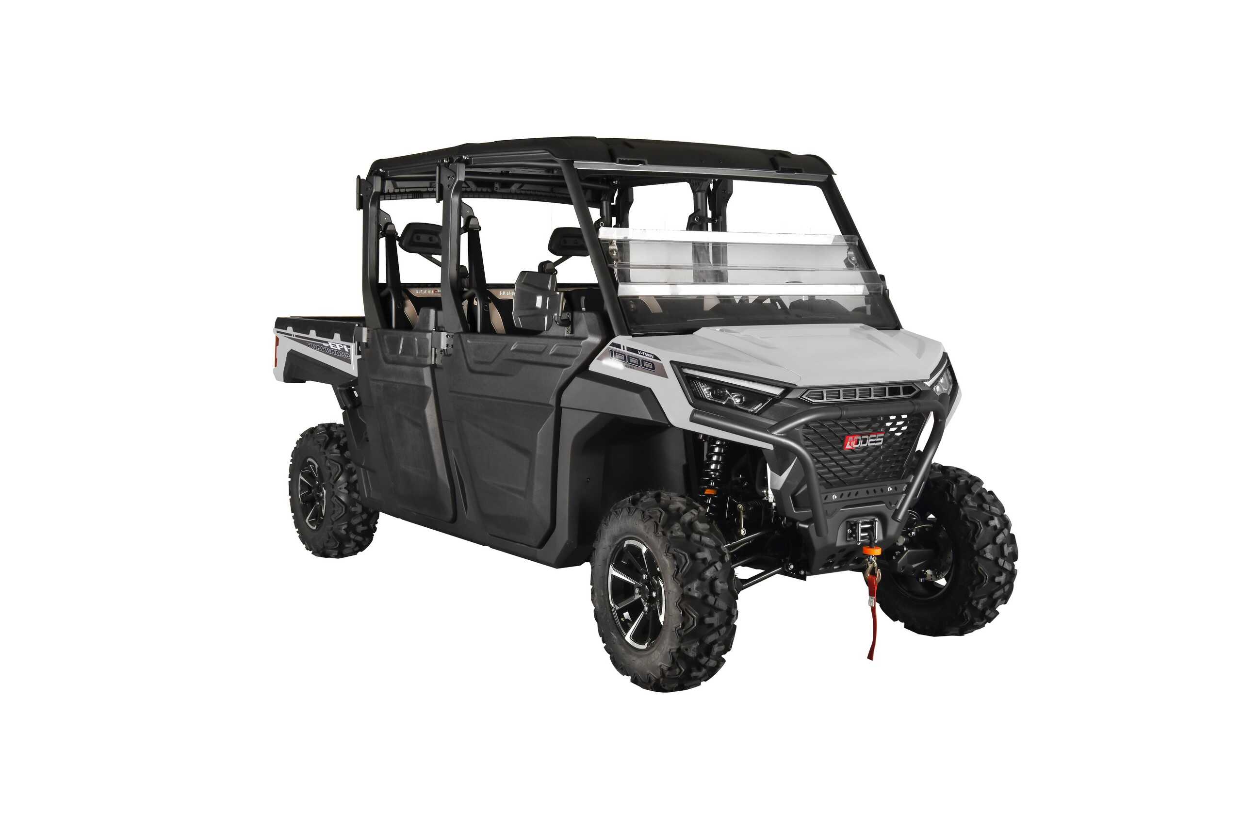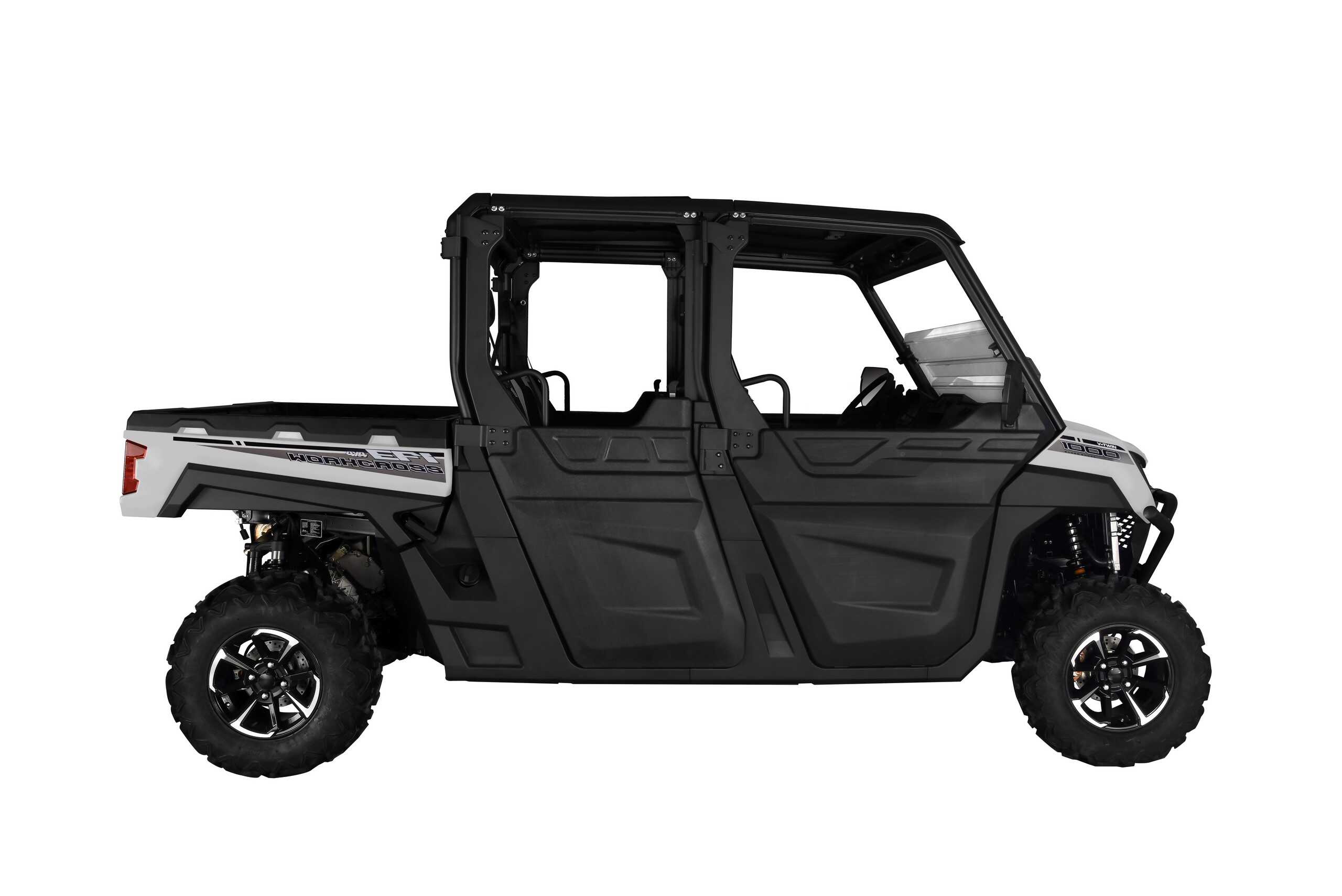 - Included Features: Scratch Resistant Front/ Rear Polycarbonate Windshield ● Polycarbonate Roof ● Polycarbonate Half Doors ● Side View/ Rear View Mirrors ● Portable Storage Box